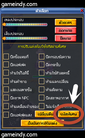 เสร็จแล้วให้ออกเกม และเข้าใหม่และทำการใส่รหัสผ่านพิเศษ ในการเข้า