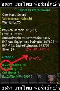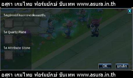 งั้น ช่อง แรก ใส่ อาวุธ ลงไปช่องที่สอง ใส่ Quazt plate 2 ลงไป คุณสมบัติ เปลี่ยน เลเวล จาก 2 เป็น 3ช่องที่สาม ใส่ หินออฟชั่น ชิ้นแรก(สีแดง) ที่ช่วยเพิ่ม physical attack เมื่อพร้อมแล้วก็ กด OK ได้เลยครับ